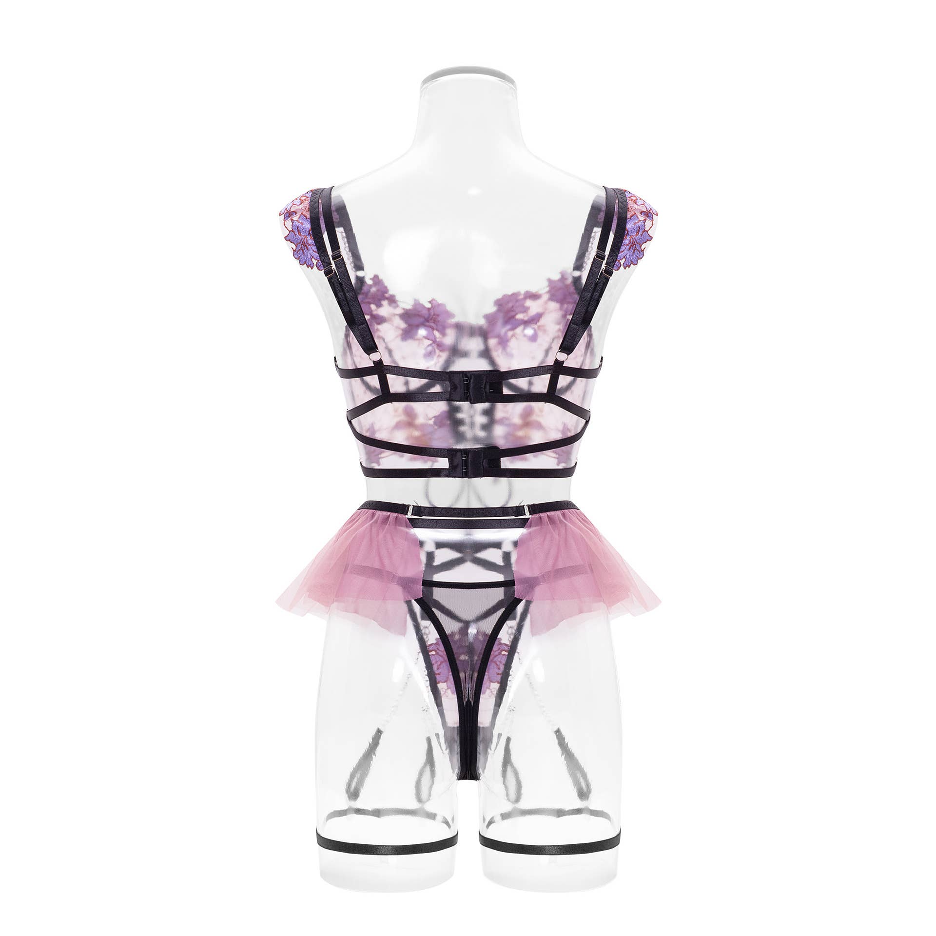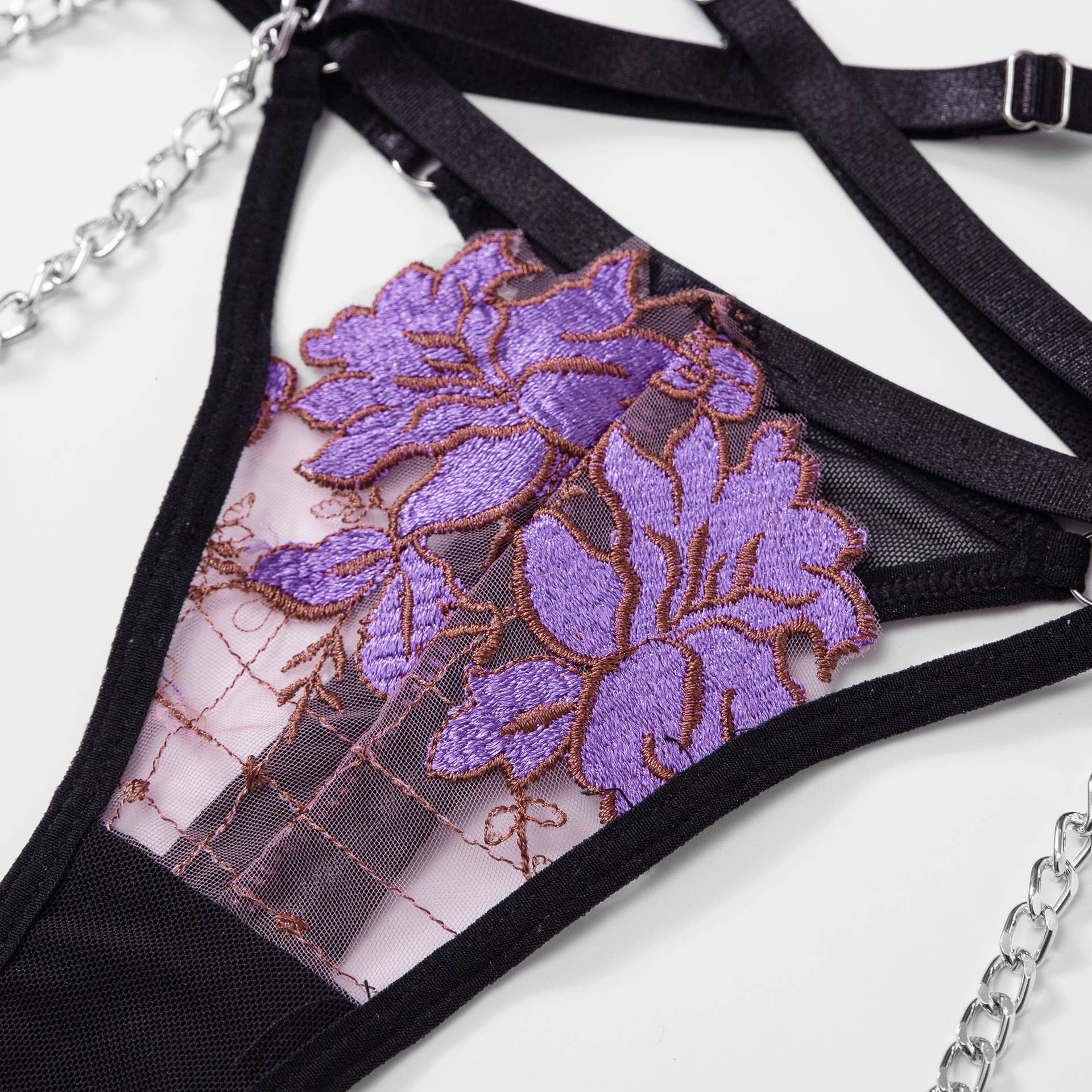 Violet Dreams Lingerie Set, gorgeous embroidered corset style Bra with underwire.